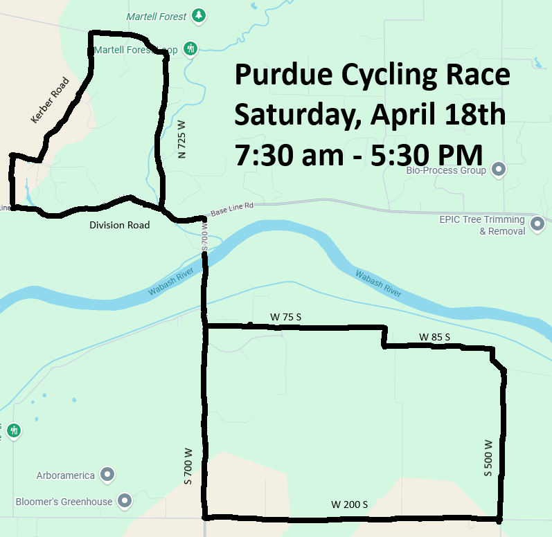 We, the Purdue Cycling Club (PCC), are the hosts for the event, which is part of the Midwest Collegiate Cycling Conference (MWCCC), and USA Cycling (USAC). The event is supported by the Indiana-Kentucky Cycling Association (INKY). Please direct any questions to pcc@purdue.edu.
